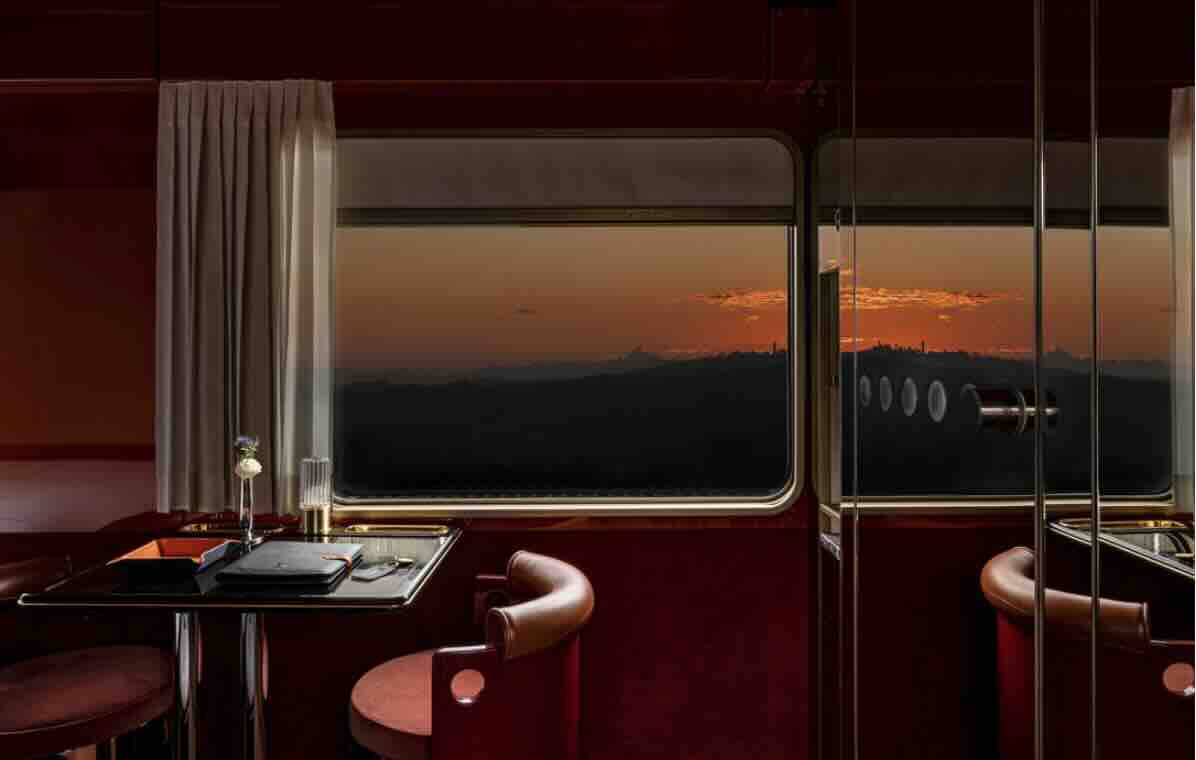 Italian luxury train journeys are as much about aesthetic refinement as they are about destination. Inspired by mid-century Italian design, onboard interiors reinterpret the glamour of 1960s rail travel through a contemporary and sophisticated lens.