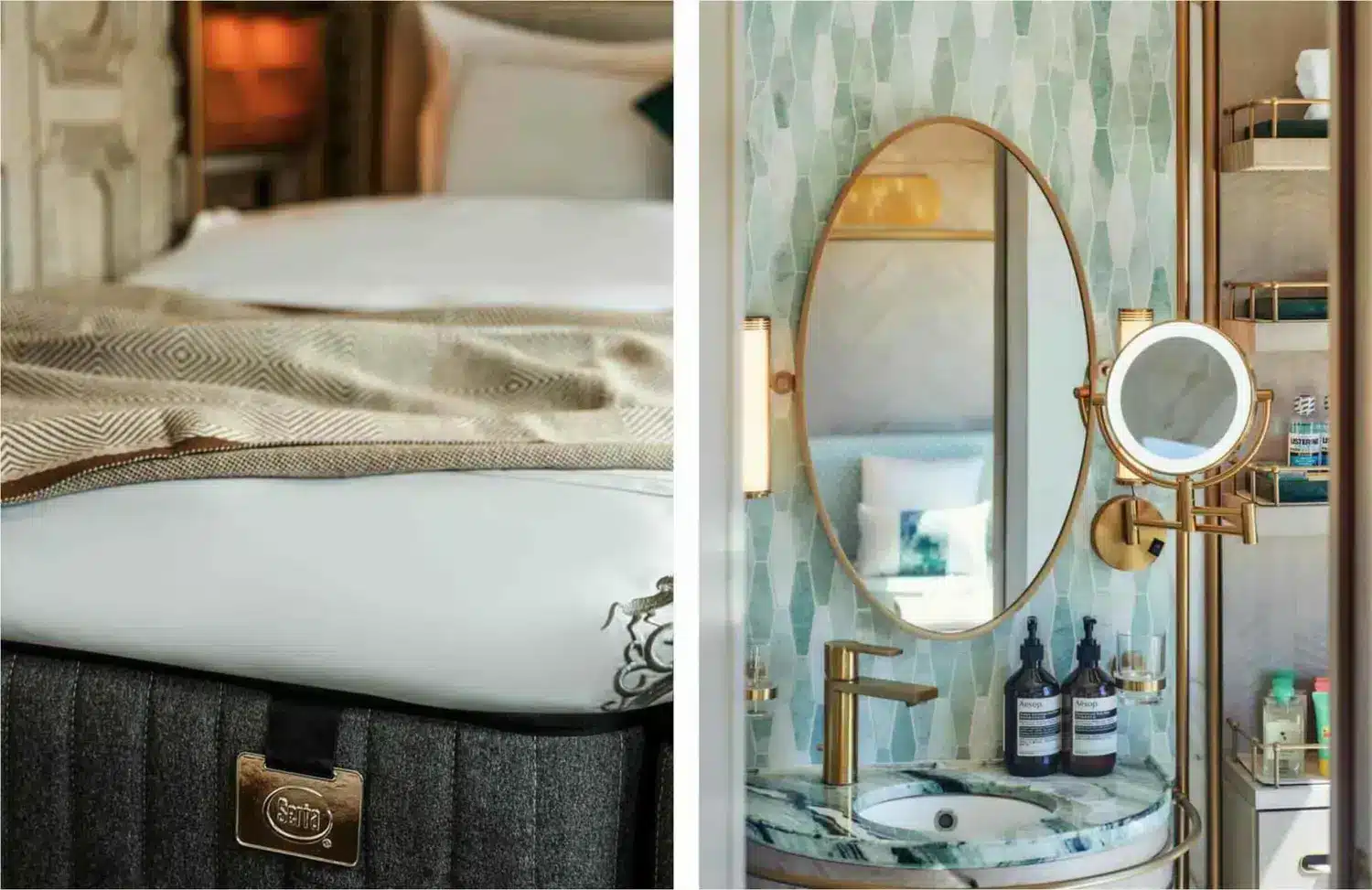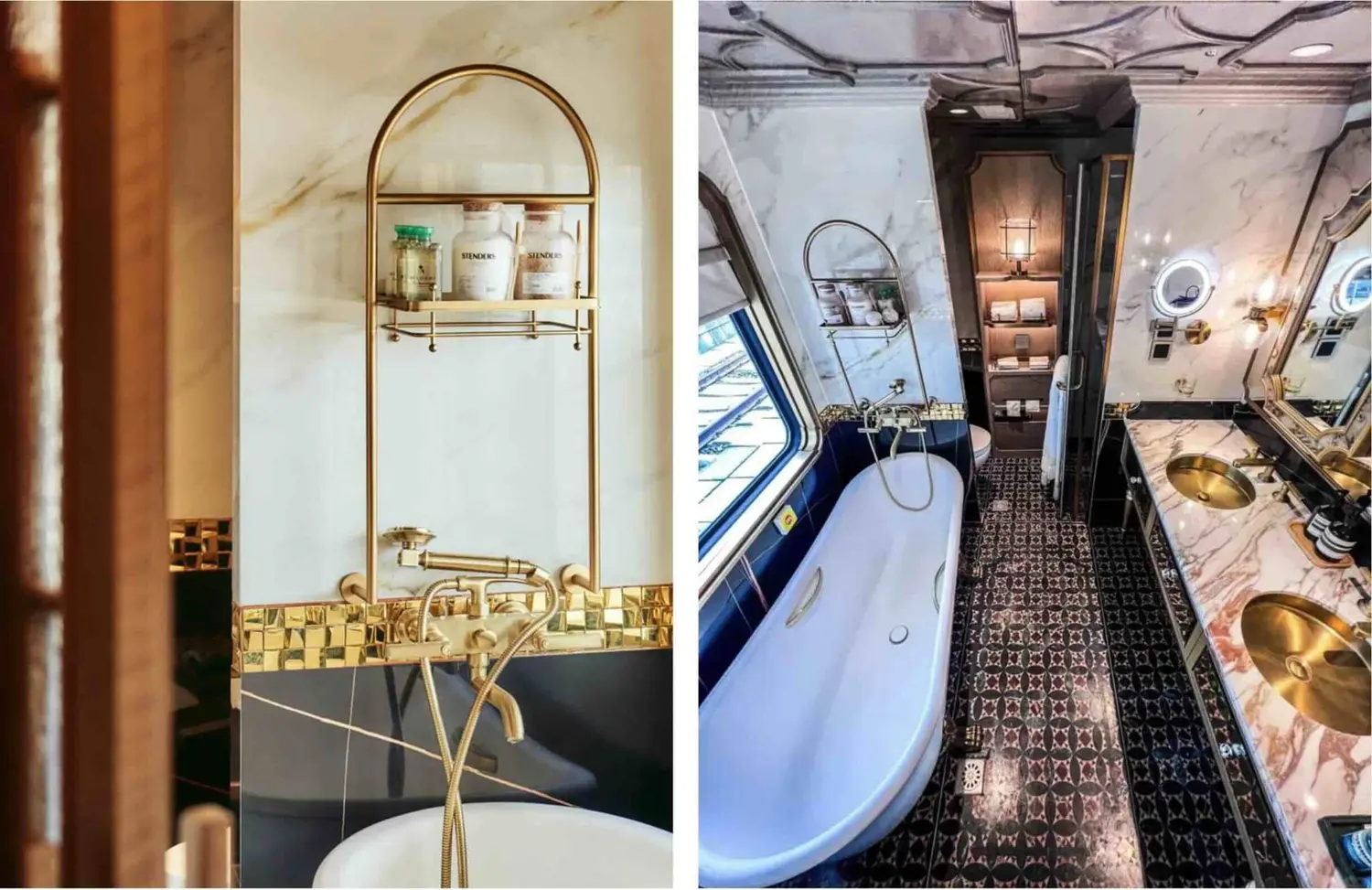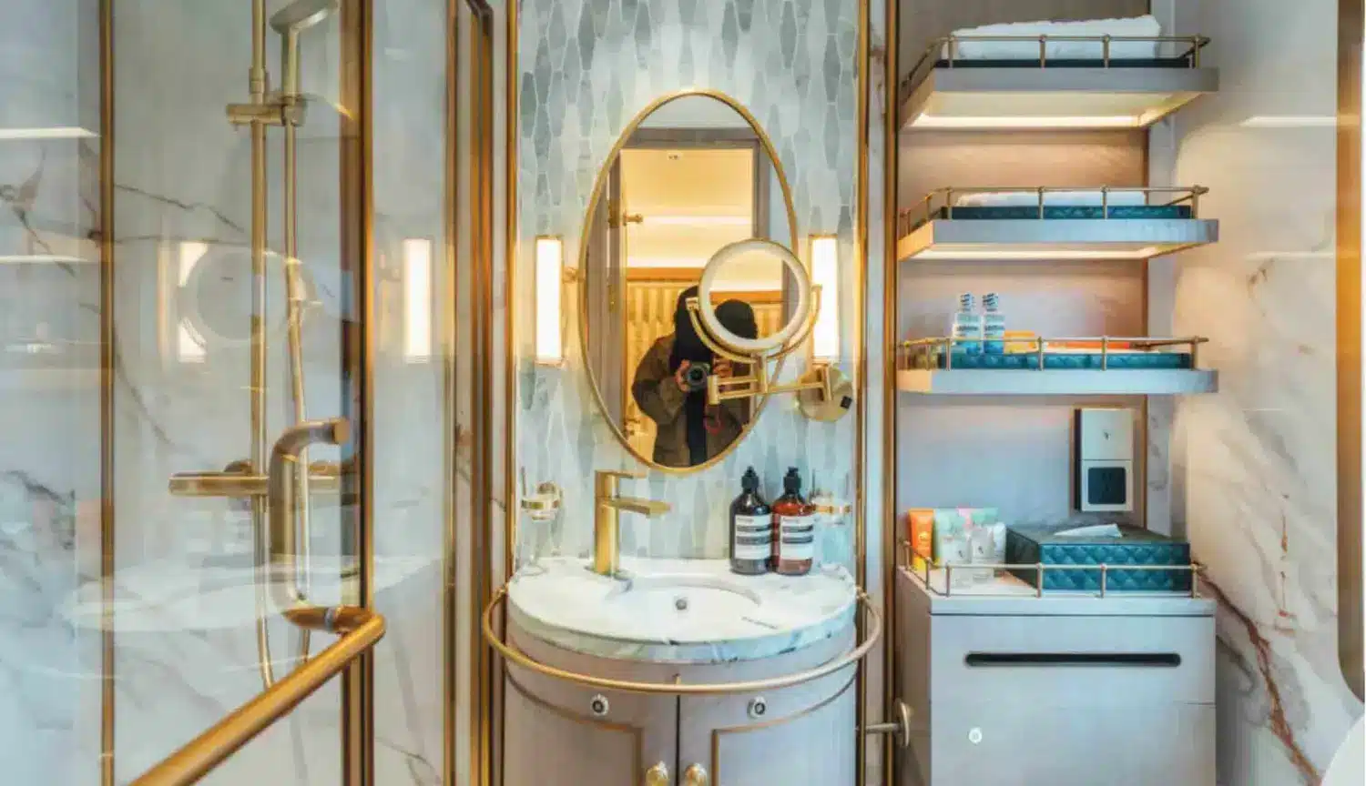 The Superior Cabin offers 11 m² of refined comfort and contemporary style. By day, two elegant sofas provide space to relax and admire the ever-changing Silk Road landscapes; by night, they convert into a comfortable double bed for restful sleep. Thoughtfully appointed amenities include a Dyson hairdryer, smart toilet, minibar, full-length wardrobe, and a cosy armchair. The 2.5 m² en-suite bathroom features sleek, modern fittings, ensuring convenience and privacy. Blending timeless design with modern indulgence, the Superior Cabin provides an intimate, elegant retreat for travellers seeking both comfort and sophistication on this legendary journey.