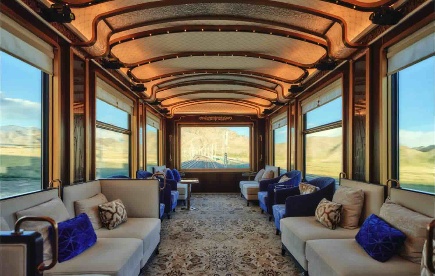 The Bar Lounge Car embodies timeless sophistication, where history and modern craftsmanship unite in an elegant social haven. Enter through double doors inspired by Han Dynasty chariots and discover a refined space for relaxed gatherings. At its centre, a magnificent Bösendorfer piano sets the mood for cultured evenings, while antique silverware and art pieces reflect the Silk Road’s heritage. Every detail exudes luxury, creating a warm, exclusive setting for conversation and performance.